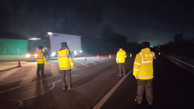 民警了解情況后,立即將情況上報,并迅速通知消防、路政等相關部門人員趕赴現場進行處置。為防止自燃車輛爆炸對過往車輛造成危險,哈雙大隊啟動重特大事故應急預案——封閉遠端京哈進入環城匝道口及環城主線,預防車輛擁堵高速公路,并派警力分流后續車輛就近駛出高速公路。經過消防部門歷時兩個小時的處置,大火于23時許被撲滅。