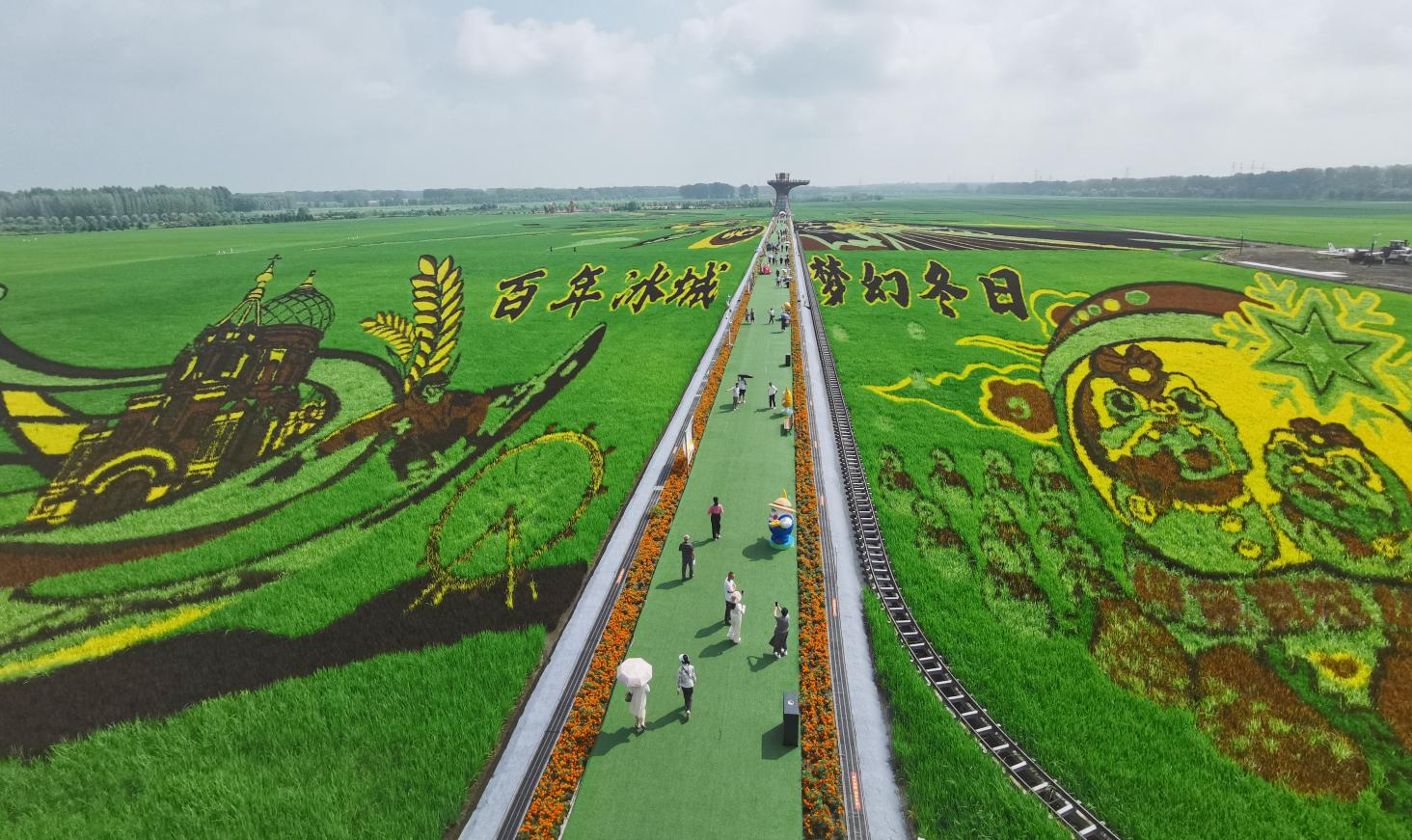 隨后,全體參會人員觀賞了閆家崗農場于2025年新推出的國潮主題系列稻田畫,感受穿梭于彩色稻浪中的小火車,品鑒哈爾濱有限公司出產的系列“和農場”農副產品,在稻田集市中欣賞精美的稻穗花束,品鑒窯爐面包、稻香咖啡……暢享夏日田園帶來的無盡歡樂與品質生活之美。